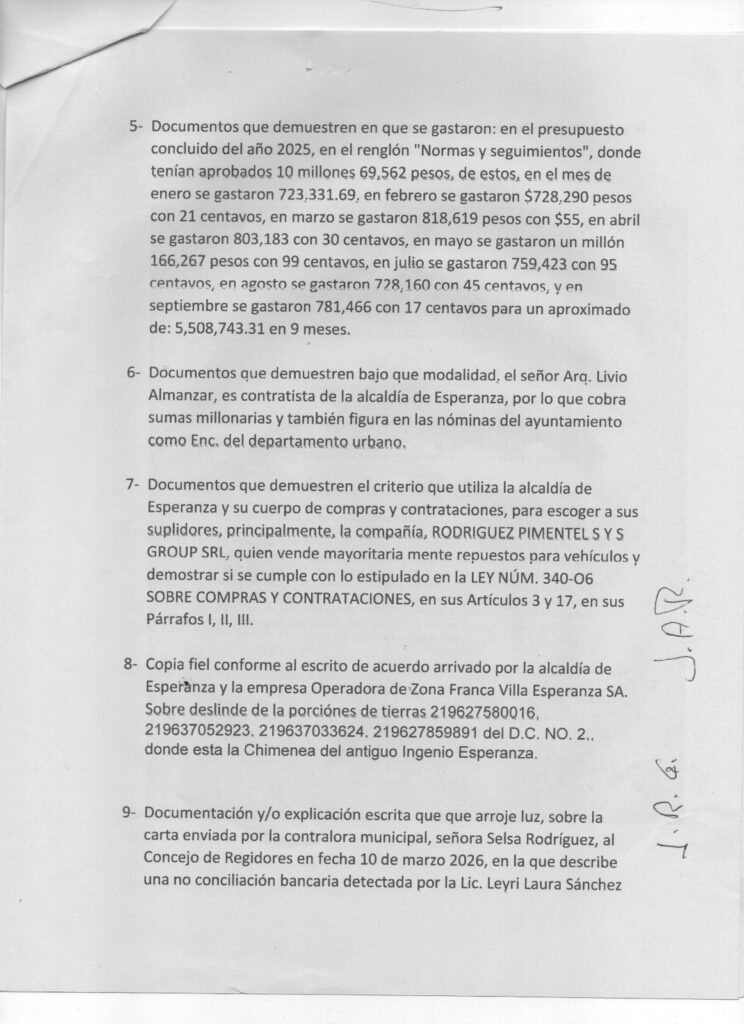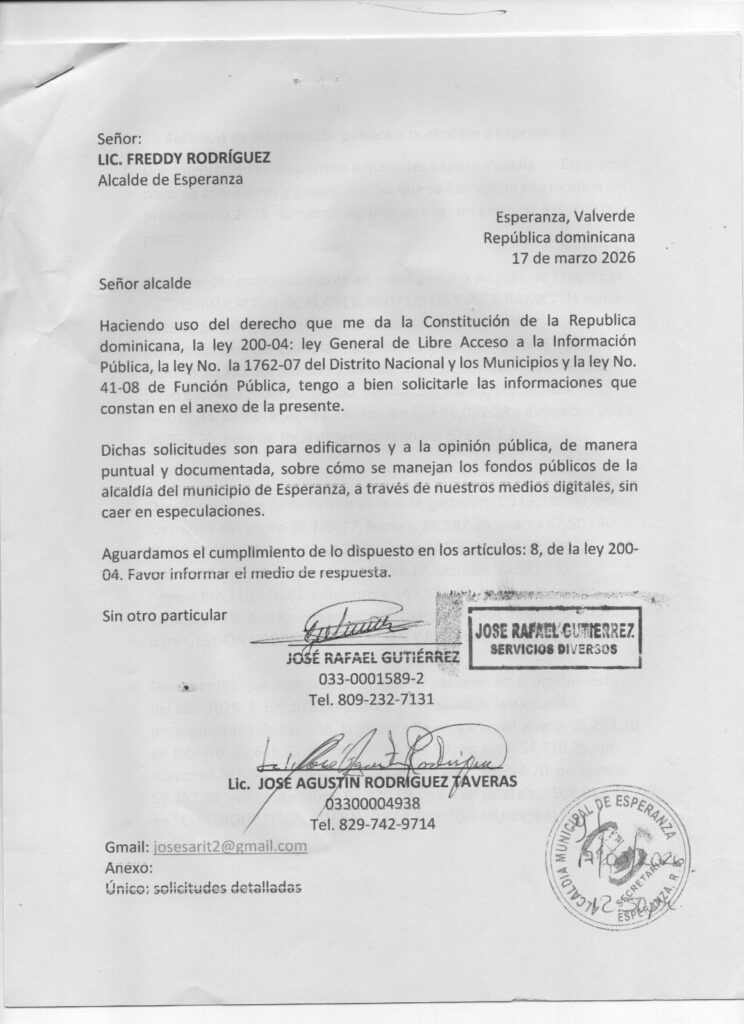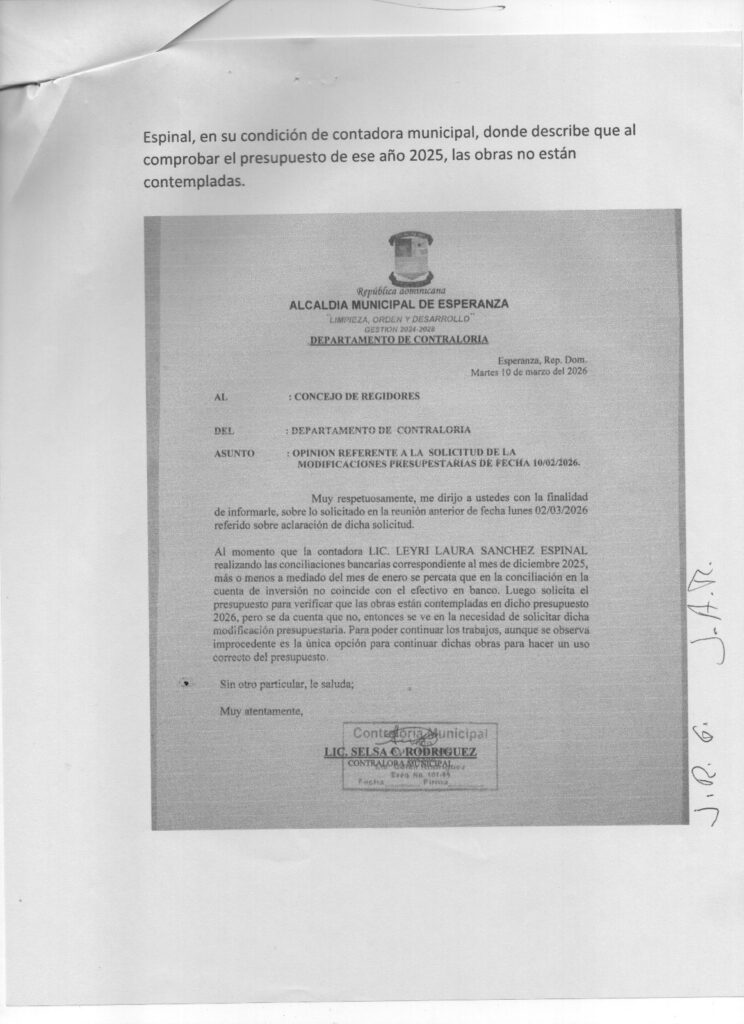 Esperanza, Valverde.: Un conjunto de documentos oficiales y solicitudes de información pública, obtenidos de manera exclusiva, arrojan nuevas interrogantes sobre la gestión financiera de la Alcaldía de Esperanza, en lo que podría convertirse en uno de los casos más sensibles en torno al manejo de recursos municipales en los últimos años.