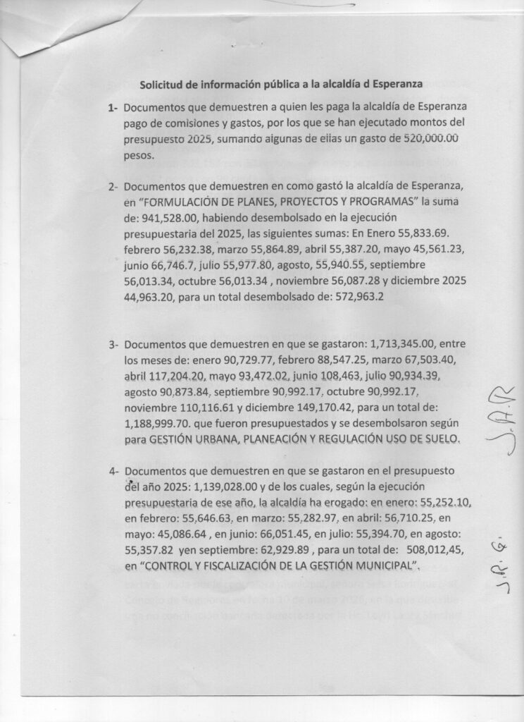 SOMBRA SOBRE EL PRESUPUESTO: DOCUMENTOS REVELAN POSIBLES IRREGULARIDADES EN EL MANEJO DE FONDOS DE LA ALCALDÍA DE ESPERANZA