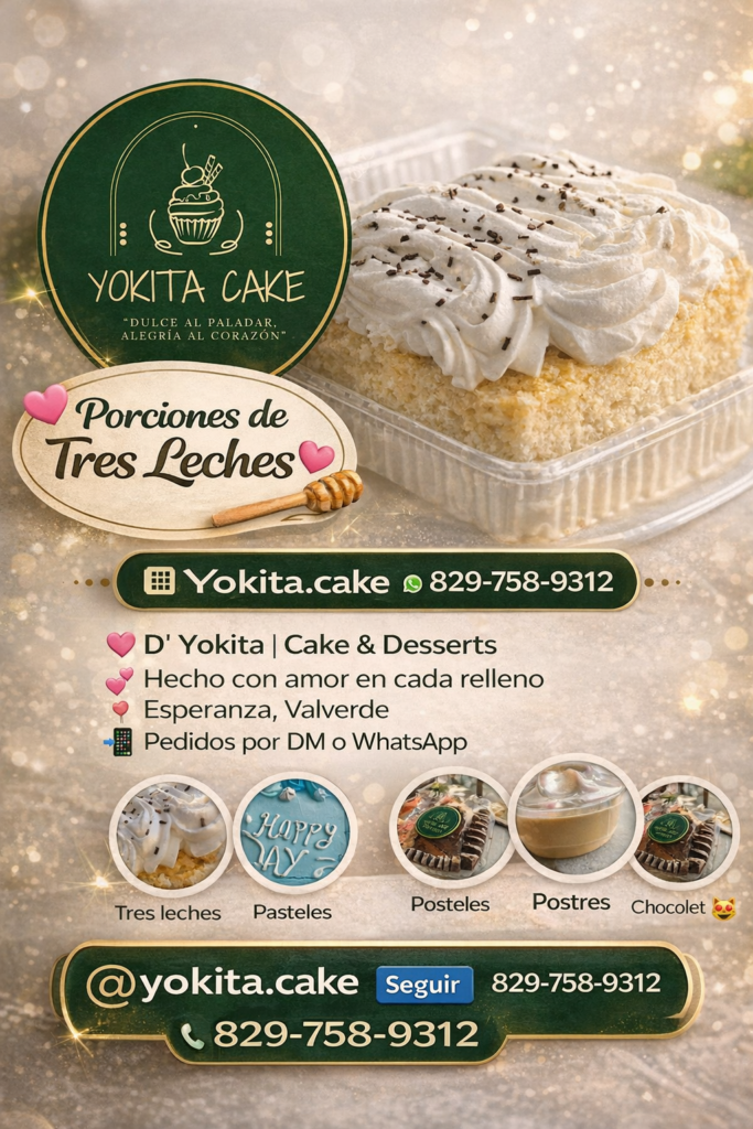📍 Esperanza, Valverde.: En medio del crecimiento de los pequeños emprendimientos en el municipio, una propuesta dulce comienza a captar la atención de los amantes del buen postre: Yokita Cake, un proyecto que combina pasión, dedicación y sabor en cada creación.